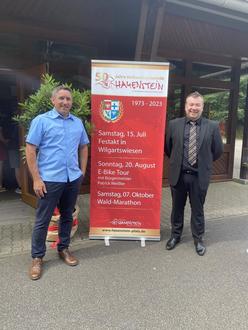 Bürgermeister Weißler (rechts) und Beigeordneter Wilde (links) begrüßen die Gäste am Eingang