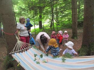 Besonderen Spaß hatten alle Kinder in der Hängematte, beim Balancieren über alle möglichen Unebenheiten und das Waldpicknick auf der Decke schmeckte allen gut.