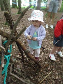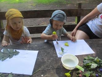Wir bauten dem Wichtel ein neues Haus aus Stöcken, sammelten Blätter und Blüten für unsere bunten Gemälde, beobachteten Ameisen und Käfer.