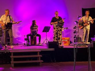 Und wieder war uns der Wettergott nicht wohlgesonnen. Erneut musste die Veranstaltung, die eigentlich im freien geplant war, ins Bürgerhaus verlegt werden. Hier spielte sich die Gruppe „MARTINA EXTRA 3“ in die Ohren und Herzen der Zuschauer. Trotz der anderen Lokation waren etwa 70 Zuhörer gekommen, die Stimmung war toll. Auch die Bewirtung durch den Förderverein der KiTa St. Hedwig hat gut funktioniert. Nun bleibt zu hoffen, dass die nächsten Veranstaltungen, z.B. bereits am 10.08., tatsächlich wie geplant auf dem Lorenz-Wingerter Platz stattfinden kann.