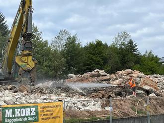 Die Baustelle hat gute Fortschritte gemacht, von dem einst stolzen Gebäude sind nur noch gebrochene Teile zu erkennen. Die Bauarbeiten ruhen derzeit, am 12.08. soll es weitergehen.