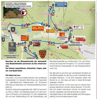 Information und Kommunikationseinheit des Landkreises Südwestpfalz (1), Deutsche Rote Kreuz aus Hauenstein (2), Jugendfeuerwehr Wilgartswiesen (3), Technische Hilfswerk aus Hauenstein (4), Arbeitersamariterbund Südpfalz (5) Deutsche Lebensrettungsgesellschaft- DLRG (6) aus Landau, Infos zu Wald- und Vegetationsbrand von der Feuerwehr in Pirmasens und Hauenstein (7), die Logistikeinheit und den Gefahrstoffzug (9) der Südwestpfalz, die Rettungshundestaffel aus Zweibrücken (10), die Höhenrettung der Feuerwehr Pirmasens (11) und den Kreisfeuerwehrverband Südwestpfalz mit der Kreisjugendfeuerwehr (12)