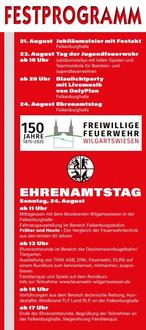 Ab 11 Uhr morgens gibt es eine Fahrzeugaustellung und zum Mittagessen spielt der Musikverein Wilgartswiesen.Um 13 Uhr startet die Ehrenamtsrunde und gegen 15:30 Uhr gibt es Vorführungen im Bereich der Falkenburghalle.