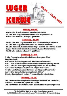 Endlich ist es wieder soweit. Nach zwei Jahren coronabedingtem Pausieren findet die traditionelle Luger „Hächert“ Kerwe in diesem Jahr von Freitag, 9. September bis Montag, 12. September wieder statt.