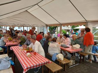 Wie in den letzten Jahren, wurde unsere Luger Kerwe auf dem Dorfplatz gefeiert. Nach dem Gottesdienst in der Kirche übernahmen im Anschluss die Luger Vereine und die Bäckerei Burkard die Bewirtung der Kerwegäste.