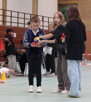 Neben dem modern ausgestatteten Schulhaus standen auch die großzügige Turnhalle und das Schulstadion im Mittelpunkt der Führungen, die von Schülerinnen und Schülern übernommen wurden. Mit Begeisterung führten die Mitglieder der Schülervertretung – Melike Bulut, Elias Funk, Valentin Meyer, Ali Naaso, Tessa Neuer und Christine Hammer – durch das abwechslungsreiche Programm. Dieses reichte von Musikdarbietungen der 5. und 6. Klassen über Interviews mit Beteiligten verschiedener Bereiche bis hin zu spannenden Präsentationen rund um das Schulleben.