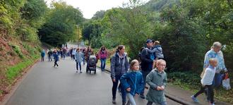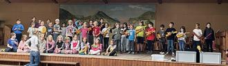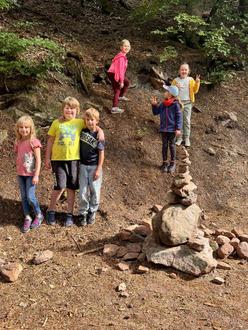 Eltern, Kinder und Lehrkräfte versammelten sich bei strahlendem Sonnenschein vor der Schule und zogen gemeinsam durchs Dorf zur Falkenburghalle. Von dort aus folgten einige Lauffreudige dem Angebot, die Familienwanderung über den Waldkugelbahnweg zu verlängern. Nach unserer Rückkehr an der Falkenburghalle starteten wir unser Apfelprogramm. Zur Begrüßung sangen alle Kinder das Lied „Du, Ich, Wir“, das sinnbildlich für unsere Schulgemeinschaft steht. Danach trug jede Klassenstufe etwas zum Programm bei: Unsere Jüngsten führten ein Apfel-Fingerspiel vor und die Zweitklässler übersetzten den Apfel in unterschiedliche Sprachen. Die Schüler der dritten Klasse lasen die Geschichte von Herrn Böse und Herrn Streit vor und untermalten diese mit selbst gestalteten Bildern. Unsere Großen trugen das Gedicht vom schlafenden Apfel vor. Natürlich durfte auch das Apfellied zum Abschluss nicht fehlen.