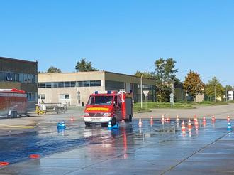 Unter anderem wurden Ladungssicherung, Parcourfahren, Gefahrenbremsungen auf verschieden nassen Untergründen sowie Gefahrenbremsung mit Ausweichmanöver geschult, um das Fahrverhalten des Einsatzfahrzeuges gerade im Notfall besser einschätzen zu können.