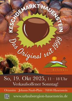 Der traditionsreiche Hääschdner Keschdemarkt ist weit über die Region hinaus bekannt und lädt in diesem Jubiläumsjahr zu einem ganz besonderen Wochenende voller Kastanien-Highlights ein. Die Gastronomie offeriert die ganze Woche Kulinarik mit Keschde. Näheres siehe unter Urlaubsregion.