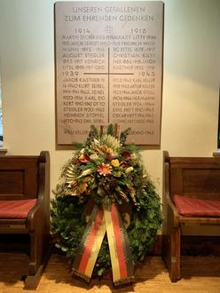 Ortsbürgermeister Schöffel wird in stillem Gedenken einen Kranz niederlegen.