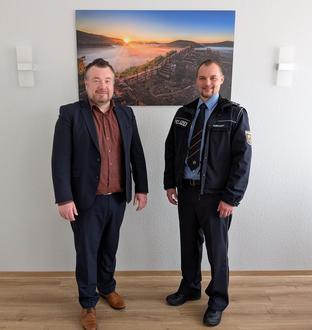 Bürgermeister Patrick Weißler (links) mit Polizeioberkommissar Philipp Burkhart (rechts)