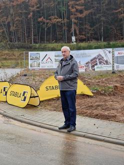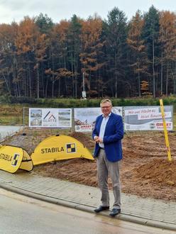 Am vergangenen Montag war es endlich soweit. Nachdem der Grundstückkauf vollzogen worden war, die Baugenehmigung eingereicht und auch der Bebauungsplan genehmigt wurde, konnte der erste Spatenstich zum Neubau des Logistikzentrums der Firma STABILA aus Annweiler vollzogen werden. Der Geschäftsführer Ulrich Dähne eröffnete die Zeremonie und gab einen kurzen Abriss über die Geschichte des Unternehmens und welche Gründe es gab, hier im Interkommunalen Industriegebiet einen Bereich der Firma anzusiedeln. Die Firma will hier etwa 15 Millionen € investieren und es soll ein fast 8.000 qm großes Gebäude, nach modernsten Vorgaben und auch klimafreundlich, entstehen. Auch der Sprecher der Gesellschafterversammlung bestätigte dies und erklärte für die Eigentümerfamilien, dass die genau der richtige Weg wäre, der von allen Gesellschaftern vollumfänglich unterstützt werde. Mit allen Anwesenden freute sich unsere Landrätin über die gelungene Ansiedlung und brachte als kleines Geschenk die Baugenehmigung mit, die sie persönlich überreichen konnte. Ortsbürgermeister Zimmermann sprach für den Zweckverband Interkommunales Gewerbegebiet und die diesen tragenden Ortsgemeinden Wilgartswiesen und Hauenstein. Für den Zweckverband und die Gemeinden ist es sehr begrüßenswert, dass sich eine Weltfirma wie STABILA in Hauenstein ansiedelt und perspektivisch weitere Betriebsteile hier etablieren möchte. Anschließend spezifizierte der planende Architekt noch genauer die Dimensionen des Gebäudes und quantifizierte die Menge einiger markanten Baumaterialien wie Beton oder Stahl, die hier verbaut werden. Danach wurde symbolisch der Spatenstich durchgeführt verbunden mit der Hoffnung, dass die Baumaßnahme zügig und ohne große Schwierigkeiten durchgeführt werden kann. Alles in allem, ein zukunftsweisender Tag für den Zweckverband und die beiden Ortsgemeinden.