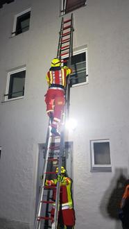 Im Jugendhaus war die Tür im Flur zum Gruppenraum der Pfadfinder nicht mehr zu öffnen, das installierte Chipschloss wäre bei der Öffnung zerstört worden. Um dies zu vermeiden kam die Leitung der Pfadfinder auf die gute Idee die Feuerwehr um Hilfe zu bitten. Mit mehreren Steckleitern erreichten die Feuerwehrleute das gekippte Fenster im 2. OG und konnten dieses auch öffnen. Die verschlossene Tür war dann von innen leicht zu öffnen. Jetzt ist der Gruppenraum der Pfadfinder wieder nutzbar und die Reparatur des Schließzylinders einfacher zu erledigen. Viele Dank an die Hauensteiner Feuerwehr für die Amtshilfe.
