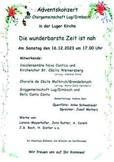 Die Ortsgemeinde Lug und der Gemischte Chor laden hierzu herzlich ein.
