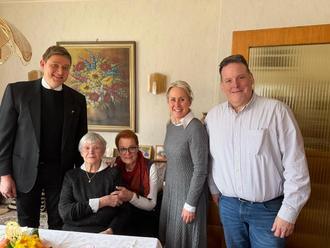 Am letzten Freitag durfte Ortsbürgermeister Eitel (rechts im Bild) gemeinsam mit der Landrätin Frau Dr. Ganster (2. von rechts) und Herrn Pfarrer Damerow (links) Frau Ingeburg Bauer zum 100. Geburtstag im Namen der Ortsgemeinde Hinterweidenthal gratulieren.
