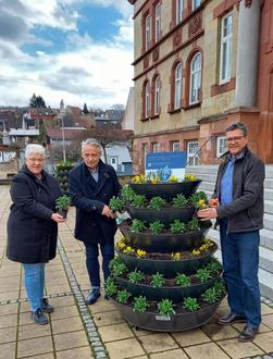 Hierfür war der Regionalverbandsdirektor Peter Gillo eigens nach Friedrichsthal gekommen, um gemeinsam mit Bürgermeister Jung auf dem Rathausvorplatz die symbolträchtigen Pflanzen einzusetzen.