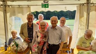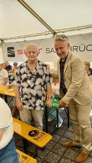 In einem vollen Festzelt feierten fast 200 Seniorinnen und Senioren den diesjährigen „Bunten Nachmittag“ und ließen es sich bei Kaffee und Kuchen oder Würsten mit Weck sowie kühlen Getränken gut gehen. Bürgermeister Jung und die ehrenamtliche Beigeordnete des Regionalverbandes Saarbrücken, Anita Morschette-Sarg, begrüßten die Anwesenden auf der Sportanlage des Sportvereines Hellas.