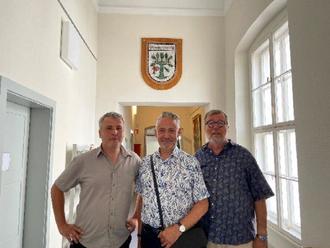 Antrittsbesuch von Bürgermeister Jung in Oranienburg bei Bürgermeister Alexander Laesicke (links) und Alt-Bürgermeister Hansi Laesicke (rechts), Foto: Stadt Oburg