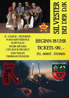 Die Musik zum Jahresabschluss kommt von der Band “City Rock Project”, die bereits im Sommer für Furore gesorgt hat. Diese präsentieren neben zahlreichen Rockklassikern ihre Best of Rock – Show und haben das passende Programm für die Silvesterparty dabei. Die Verpflegung der Gäste übernimmt Partyservice Kurt Haas mit seinem Team, der sich bei den zahlreichen Veranstaltungen im Laufe des Jahres in Bildstock einen Namen gemacht hat. Er hat ein für Silvester angepasstes Sechs-Gänge-Festmenü dabei.