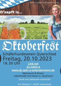 der Hundeverein Quierschied veranstaltet in diesem Jahr zum ersten mal ein tolles Oktoberfest mit Wahnsinns Programm.