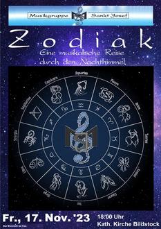 Haben Sie heute schon Ihr Horoskop gelesen? Möchten Sie vielleicht auch einmal Ihr Tierkreiszeichen (Zodiakus) hören? Diese Klangerfahrung können Sie am 17. November um 18 Uhr in der Kath. Kirche in Bildstock erleben.
