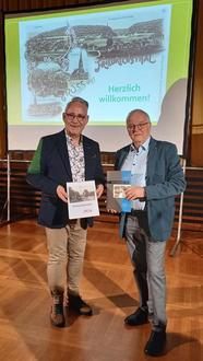 Bürgermeister Christian Jung (links) und Werner Klär, Leiter des Arbeitskreises, stellten die neuen Ausgaben zur Friedrichsthaler Geschichte vor. Foto: Stadt Friedrichsthal