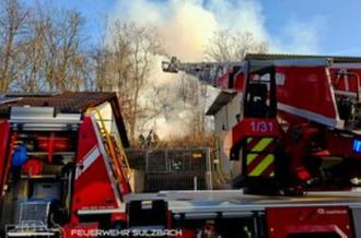 Zur Sicherstellung der Löschwasserversorgung mussten rund 300m B-Schlauch zur Einsatzstelle verlegt werden. Durch den Einsatz mehrerer Atemschutztrupps und einem Wenderohr über die Drehleiter konnte das Feuer nach ca. 1 Stunde unter Kontrolle gebracht werden. Nach rund 4 Stunden konnten die Arbeiten abgeschlossen und "Feuer aus!" gegeben werden. Die Feuerwehr Sulzbach war mit 8 Fahrzeugen und 50 Wehrleuten aus den Löschbezirken Stadtmitte und Altenwald vor Ort. Der Einsatz zog sich über 4 Stunden hin. Glücklicherweise gab es keine Verletzten zu beklagen!