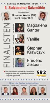 Seit 2011 gibt es ihn nun schon, den Deutsch-Französischen Chanson- und Liedermacherwettbewerb „Sulzbacher Salzmühle 2023 - Le Moulin à Sel de Sulzbach 2023“. Am Samstag, 11. März 2023 geht er in seiner zwischenzeitlich sechsten Ausgabe seinem diesjährigen Finale entgegen. Nachdem die seit 2011 stattfindende Reihe vor zwei Jahren dem Corona-Virus zum Opfer gefallen war, freut sich die Stadt Sulzbach nun auf ein spannenden Konzert mit den vier Finalisten - Stephan Krawczyk und Magdalena Ganter aus Deutschland sowie „Vanille“ und Frédéric Zeitoun aus Frankreich.