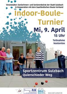 Am Mittwoch, 09. April 2025, veranstaltet der Seniorenbeirat der Stadt Sulzbach im Rahmen der „Senioren Fitness-Tage“ in Kooperation mit dem Saarländischen Boule- Verband ein Indoor-Bouleturnier.