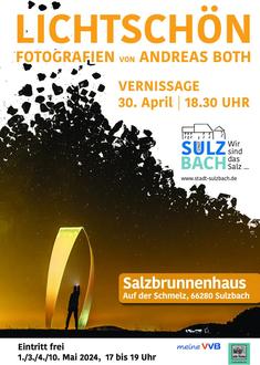 Zu einer großen Vernissage lädt Andreas Both am Dienstag, 30. April 2024, 18.30, Uhr ein. Bis zum Freitag, 10. Mai 2024, sind dann einige seiner Bilder in den historischen Mauern des Sulzbacher Salzbrunnenhauses zu bestaunen. Die Fotografien des ambitionierten Fotografen Andreas Both aus Sulzbach sind von Augenblicken voller Licht, märchenhaften Sonnenaufgängen und beschaulichen Szenen bestimmt. Der Gewinner des Fotowettbewerbs „Mein Lieblingsplatz im Saarland“ zeigt in seiner Ausstellung farbenfrohe Bilder aus unserer Heimat. Die Ausstellung ist darüber hinaus an folgenden Tagen jeweils von 17 bis 19 Uhr zu besichtigen: 1., 3., 4. und 10. Mai 2024. Der Eintritt ist an allen Tagen frei.