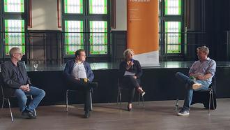 Das Podium unter der Moderation der Journalistin Dr. Ilka Desgranges war hochrangig besetzt: Jens Stahnke, Städteplaner und Architekt und der Präsident der Architektenkammer des Saarlandes (AKS) Alexander Schwehm bescheinigten Bürgermeister Michael Adam für die Baukultur in Sulzbach einen richtig begonnenen Weg im Sinne einer Zeitenwende. Mit der Umstrukturierung der Innenstadt im Bereich der Sulzbachtalstraße, der Erweiterung der grünen Lunge des Salinenparks in Richtung Hessenland (Feuerwehr und Musikschule), die Steigerung der Attraktivität durch eine neue Freitreppe zum Salzbrunnen-Ensemble aber auch die angepackten Themen Sauberkeit und Mobilität führten zu einer verbesserten Situation und Perspektive für Sulzbach.