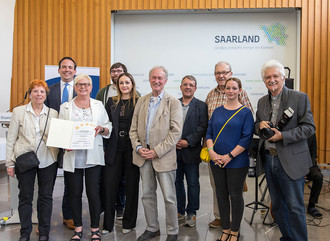 Der Chef der Staatskanzlei und Bevollmächtigte für Europaangelegenheiten Staatssekretär David Lindemann, der Vorsitzende des Landkreistages Saarland Landrat Udo Recktenwald, das geschäftsführende Vorstandsmitglied des saarländischen Städte- und Gemeindetages Stefan Spaniol und die Geschäftsführerin der Europäischen Akademie Otzenhausen (EAO) Stéphanie Bruel haben die Gewinnerinnen und Gewinner in der Staatskanzlei ausgezeichnet.