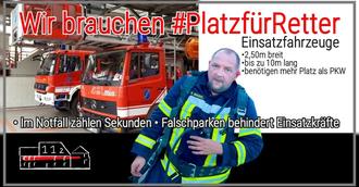 Im Ernstfall zählen Sekunden! Wir können im Notfall nur helfen, wenn wir zu Ihnen durchkommen. Helfen Sie mit, die Straßen für Rettungskräfte freizuhalten. Vielen Dank!