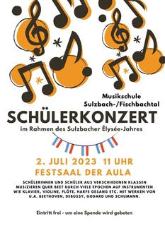 Im Rahmen des Elysée-Jahres ist das große Schülerkonzert der Musikschule Sulzbach-/Fischbachtal das Dritte von insgesamt sechs Konzerten, die die Musikschule zu den Feierlichkeiten der Stadt Sulzbach zum 60. Jahrestag des Elysée-Vertrages beiträgt.