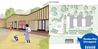 Der neue Kindergarten soll in Schnappach im Bereich des Fritz-Zolnhofer Platz gebaut werden. Wie beim Erweiterungsbau der Grundschule Mellin wurde Ende des Jahres 2021 die Firma ABMP Architektur mit der Gebäudeplanung/Architektur im Zuge eines VGV-Verfahrens (europaweite Ausschreibung) beauftragt. Die Gesamtkosten für das Projekt belaufen sich auf rund 7.5 Mio. Euro.