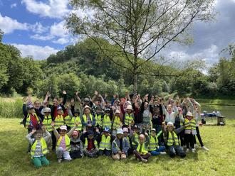 Zusammen ging es weiter nach Schnappach zu den Vorschulkindern der Städtischen Kita. Auch hier standen die Kleinen schon gut vorbereitet zum Abmarsch ins Ruhbachtal bereit. Bei bestem Wetter wanderten alle zur Schutzhütte am Ruhbach. Hier wurde erst mal ein gemütliches Picknick aus dem Rucksack veranstaltet. Anschließend erkundeten die Kinder ausgiebig die Umgebung. Alle hatten große Freude beim Spielen, Forschen und Entdecken mit ihren (neuen) Freunden am Bach und im Wald. Dabei wurden Äste zum Brückenbau herangeschleppt oder es wurde untersucht, welches Blatt am besten schwimmen kann. Bei Spaß und Spiel auf dem nahegelegenen Spielplatz ließen wir den Tag fröhlich ausklingen.