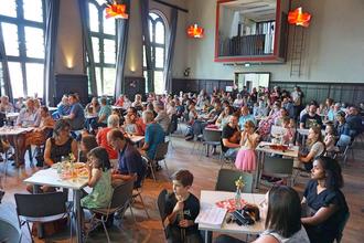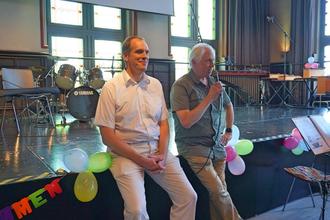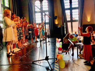 Der Festsaal der Aula war sehr gut besucht. Vierzig musizierende und singende Schülerinnen und Schüler und Lehrkräfte sorgten am vergangenen Sonntag mit über sechzig Musikbeiträgen für tolle Unterhaltung der Besucher des Sommerfestes der Musikschule. Erstmals nach zweijähriger Zwangspause veranstaltete der Förderkreis der Musikschule wieder sein traditionelles Fest zum ersten Mal in der Sulzbacher Aula. Mit dem passenden Lied "Singen macht Spaß" startete der Kinderchor "Ohrwurm" das musikalische Programm. Im Kinderkonzert musizierten die jüngsten Schülerinnen und Schüler auf Violine, Flöte, Schlagzeug oder Klavier und ernteten großen Applaus vom Publikum. Viele der Kinder waren zum ersten Mal auf einer Bühne gewesen und schafften es, trotz Lampenfieber eine tolle Performance zu präsentieren. Den Übergang zum Musikprogramm der Größeren und Fortgeschrittenen machte die Seniorengruppe "Die Goldies" mit einem afrikanischen Lied, bei dem das Publikum mitklatschen konnte. Mit jazzigen Beiträgen der Jazzcombo nahm das Fest im zweiten Teil Fahrt auf. Einzelbeiträge auf den verschiedensten Instrumenten wechselten sich ab mit Ensembles wie dem Musikschul-Chor oder den "Drumnastics". Das finale Percussion-Ensemble heizte nochmal so richtig ein; die jungen Schlagzeug-Schülerinnen und Schüler trommelten mit vollem Körpereinsatz rhythmisch auf und mit Tischen auf der Bühne. Für das leibliche Wohl wurde auch gesorgt: Das reich gedeckte Kuchenbuffet lud zum Sonntagskaffee ein. Ein Etage tiefer schminkten kreative Helferinnen und Helfer die Kinder nach Wunsch und verwandelten die Kids in kleine Batmänner, Schmetterlinge oder Tiger. Auch ein Zauberer war zu Gast. "Herr Magus" verblüffte die Gäste mit seinen Tricks. Zum Abschluss gab es für alle lustige Ballontiere oder Blumen aus Luftballons. Am Ende des Tages stand fest: Musik und Sommer gehören einfach zusammen. Fotos. Petra Pabst