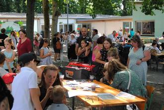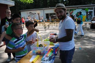 Das sommerliche Schulfest hatte ein buntes Programm zu bieten: Zahlreiche Stände mit verschiedenen Aktivitäten und Angeboten waren aufgebaut. Für Essen und Trinken und Cocktailbar war ausgiebig gesorgt. Neben Zauberaufführungen in der Turnhalle, hatten große und kleine Gäste jede Menge Spaß beim Eventmodul der Lebendkicker, bei dem man wie beim Tischfußball, nur mit echten Menschen in echten Mannschaften den Ball versenken musste. Auch für kreative Besucher wurde einiges geboten: Sowohl beim Kinder-Schminken, am Papierflieger- und Bastelstand, als auch bei der Zeichenausgabe konnte man Kreativität beweisen. Die Zeichenausgabe bestand aus den Bildern, die die Schüler selbst gemalt hatten.