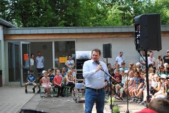 Am vergangenen Samstag wurde das beliebte Sommerfest an der Waldschule Sulzbach-Altenwald wieder veranstaltet. „Nach zwei Jahren Pause konnten wir endlich wieder ein Schulfest feiern“, so die Schulelternsprecher Martin Trapp und Silke Schneider. Mit Trommelklängen begrüßte Schulleiterin Anne Müller alle Gäste. Es wurden weitere musikalische Darbietungen der einzelnen Klassen aufgeführt, Elternsprecher Martin Trapp und Silke Schneider kamen zu Wort und luden die Besucherinnen und Besucher zu den tollen Programmpunkten und zu den vielseitigen kulinarischen Angeboten ein. Bürgermeister Michael Adam lobte die Idee, das Geld, dass beim Sommerfest zusammenkommen würde, der Ukraine-Hilfe zu spenden. „Das ist eine tolle Aktion, die Mitgefühl und Engagement zeigt“, so der Bürgermeister in seinem Grußwort.
