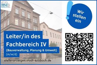 Bei Interesse bewerben Sie sich bitte bis zum 15.08.2024 vorzugsweise online über die Internetseite der Stadtverwaltung Sulzbach. (www.stadt-sulzbach.de/Verwaltung/Sulzbach-als-Arbeitgeber/Stellenanzeigen)