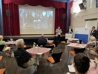 Im Rahmen des Sulzbacher Elysée-Jahres hat der Politologe Ingo Espenschied in unserer Stadt zum Elysée-Vertrag eine beeindruckende Multimedia-Show vorgestellt: vormittags am Theodor-Heuss-Gymnasium vor fünfzig Schülerinnen und Schülern der Oberstufe und abends der Sulzbacher Öffentlichkeit im Salzbrunnenhaus. Bei beiden Veranstaltungen schlossen sich nach dem Vortrag interessante Diskussionen an. Die informative und hervorragende Art der Dokumentation einer Zeitreise von knapp 1200 Jahren erhielt großes Lob – so wird Geschichte verständlich veranschaulicht. Bürgermeister Michael Adam dankte Dr. Karsten Dümmel, dem Leiter der Konrad-Adenauer-Stiftung im Saarland, der die Präsentationen in Sulzbach ermöglicht hatte.