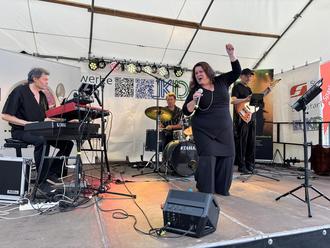 Zum Auftakt am 11. Juli begeisterten Sue Lehmann & Friends mit ihrem ganz eigenen Mix aus bekannten und weniger bekannten Melodien aus der Pop- und Musical-Historie. Immer wieder verließ die Frontfrau ihre Bühne und animierte aus dem Publikum heraus dieses zum Mitklatschen und Mitsingen. Da sagte sie scherzend: „Euch nehme ich mit. Ihr seid jetzt mein Background-Chor.“ Da ihr Auftritt so gut ankam, meinte sie direkt: „Jetzt, wo wir Freunde sind, komme ich euch freitags mal besuchen.“