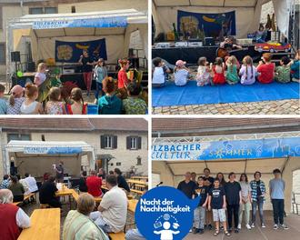 Durch eine Aufteilung des Abends wurde ein Programm für Jung und Alt geboten. So wurde am frühen Abend der Fokus mit Hilfe eines geeigneten Kinderprogramms zuerst auf die Jüngsten gelegt. Der Künstler Dennis Ebert aka Eddi Zauberfinger begeisterte die „Kleinen“ mit einem kindgerechten Programm aus Lern- und Erlebnisliedern für die Themen Klima und Umweltbezug. Danach beschäftigten sich Jugendliche und junge Erwachsene mit den Themen Klimaschutz und Nachhaltigkeit. Seit 2020 bietet die Stadtbibliothek in Zusammenarbeit mit dem Friedrich-Bödecker-Kreis in Sulzbach einen Schreibworkshop für Jugendliche im Alter von 12 bis 17 Jahren an. In diesem Jahr standen die Texte unter dem Thema „Nachhaltigkeit“ und der Leiter des Schreibworkshops, Poetry-Slammer Mark Heydrich, präsentierte die erarbeiteten Texte bei der „Nacht der Nachhaltigkeit“ gemeinsam mit den Jugendlichen auf der Bühne im Innenhof der historischen Salzhäuser. Mit Einbruch der Dunkelheit startete dann das Erwachsenenprogramm. Dies bot den Besuchern einen weiteren Poetry Slam durch die lokale Größe Florian Kern.