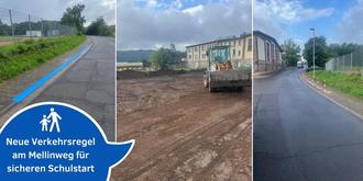 Im Bereich des Mellinwegs wurden mehrere Zonen eingerichtet, die den Bring- und Abholverkehr neu strukturieren und insbesondere die Sicherheit der Kinder erhöhen sollen. Kernstück ist eine asphaltierte Wendemöglichkeit, die bewusst aus dem unmittelbaren Eingangsbereich der Schule verlagert wurde. So soll vermieden werden, dass Fahrzeuge direkt vor dem Schulhofeingang halten oder wenden.
