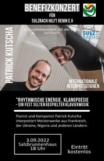 Daher erfreut es uns, dass wir Euch für den 3. September, 18.00 Uhr zu einem Benefizkonzert mit Patrick Kutscha ins Salzbrunnenhaus einladen können.