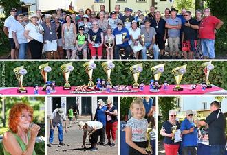 Auf dem Tisch hinter den Kampfrichtern standen schöne Pokale für die Sieger bereit, die vom saarländischen Bouleverband gesponsert waren. Auch der Sulzbacher Künstler Werner Thomé hatte es sich nicht nehmen lassen, für die Sieger der ersten zehn Plätze eigens angefertigte kleine Boule-Spieler aus Kork zu stiften. Außerdem hatte Volker Jakobs, der Präsident des Saarländischen Bouleverbandes, Medaillen für alle Teilnehmende mitgebracht