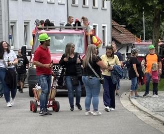 Bereits im Vorfeld feierten die Neuweilerer kräftig. So hatten sich zahlreiche Zaungäste am Samstagnachmittag in dem Ortsteil versammelt, als der Festumzug durch Schnappach zog. Mit lautem Hupen und Bonbons werfend verbreiteten zahlreiche Teilnehmerinnen und Teilnehmer auf ihren Wagen Stimmung in dem kleinen Ort. Auf dem Vereinsgelände sorgte dann unter anderem DJ Ballermann für heiße Rhythmen.