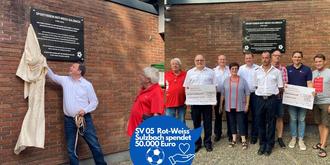 Am Mittwoch, dem 23. August schloss sich hier nach 118 Jahren Vereinsgeschichte ein Kreis. Am frühen Abend trafen sich der ehemalige Vorsitzende, Jürgen Kaufmann und Bürgermeister Michael Adam gemeinsam mit dem Bistrobesitzer Markus Schackmann und dessen Familie, Vertretern der Sulzbacher Feuerwehr, des Kinderhospiz- und Palliativteams Saar und weiteren Gästen am Bistro zu einem besonderen Anlass. "Der Verein "Rot-Weiss" hat sich aufgelöst, aber wenn die Gäste hierher zum Essen oder auf ein Schwätzchen kommen, dann sagen sie wieder: wir gehen zum ´Rot-Weiss´. Irgendwie ist das wie früher, als es noch unser Clubheim war" freute sich Jürgen Kaufmann. "Ich freue mich sehr, dass der neue Hauseigentümer, Markus Schackmann, diesen Namen für sein Bistro gewählt hat. Damit bleibt unser Verein in der Erinnerung der Sulzbacher lebendig." Damit das auch so bleibt, enthüllte er gemeinsam mit Bürgermeister Michael Adam am Mittwochabend feierlich eine am Eingang des Gebäudes befestigte Gedenktafel, auf der an die Eckdaten und die aktiven Zeiten des Vereins erinnert werden. "Insbesondere erinnern wir uns an die Männer und Frauen, die in den Jahren 1973/74 diesen Bau unter der Leitung des damaligen ersten Vorsitzenden Herbert Bless in Eigenleistung errichtet und somit dem Verein zum ersten Mal eine eigene Heimstätte geschaffen haben." steht unter anderem auf der großen Tafel geschrieben.