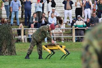 Ein besonderes Highlight war die Verleihung zweier Fahnenbänder: Das vom Inspekteur des Heeres ausgerufene und vom Bundespräsidenten gestiftete „Fahnenband Einsatz“ sowie das „Fahnenband des Ministerpräsidenten von Rheinland-Pfalz“. Während ein Einsatzsoldat das Ministerpräsidenten-Fahnenband überreichte, brachte ein Roboterhund auf originelle Weise das Einsatz-Fahnenband direkt zu den Soldatinnen und Soldaten.