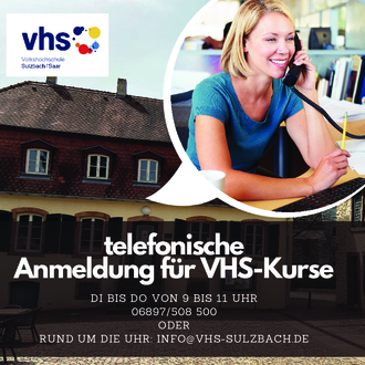 Aufgrund des großen Andranges bei der telefonischen Anmeldung für VHS-Angebote, bittet die Zentrale der VHS, die telefonischen Anmeldung Mo bis Do vormittags von 09.00 bis 11.00 Uhr unter (06897) 508 500 vorzunehmen, um Wartezeiten zu vermeiden.